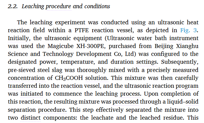 Keywords: Ultrasonic chemistry, slag fixation, selective leaching, CaCOwhisker