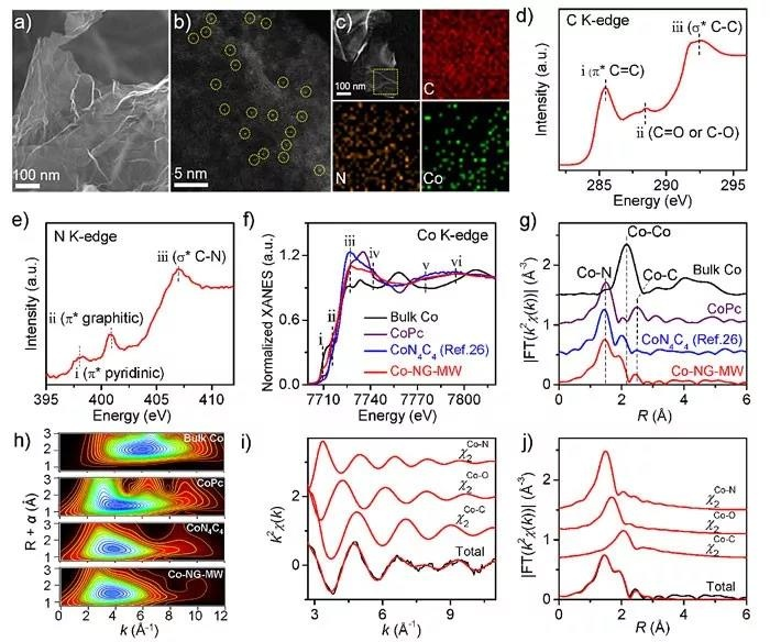圖2. 石墨烯負(fù)載鈷單原子的形貌及原子結(jié)構(gòu)表征