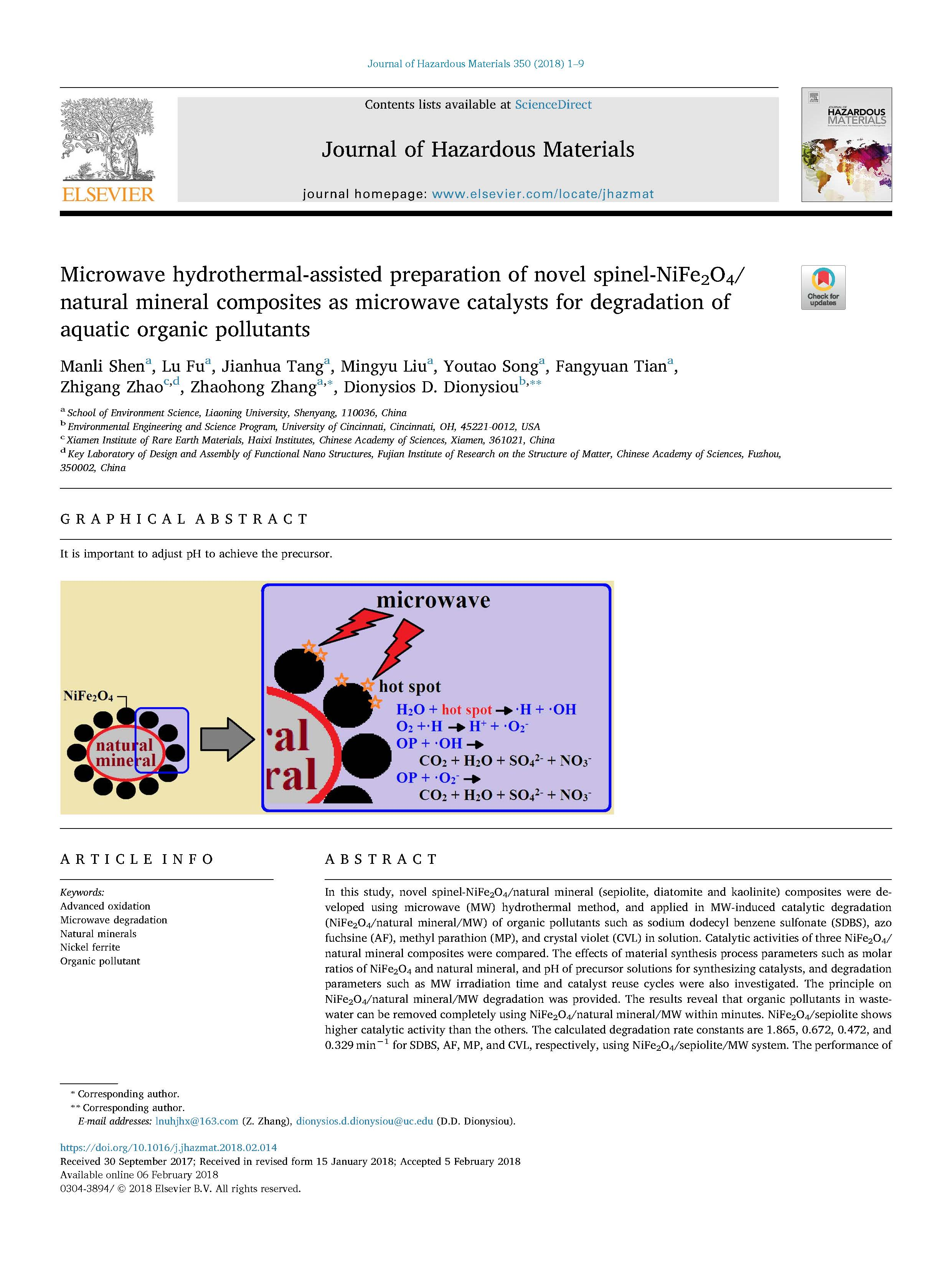 微波水熱輔助制備新型尖晶石-FeFe2O4 /天然礦物復(fù)合材料作為微波催化劑降解水生有機(jī)污染物按語(yǔ)