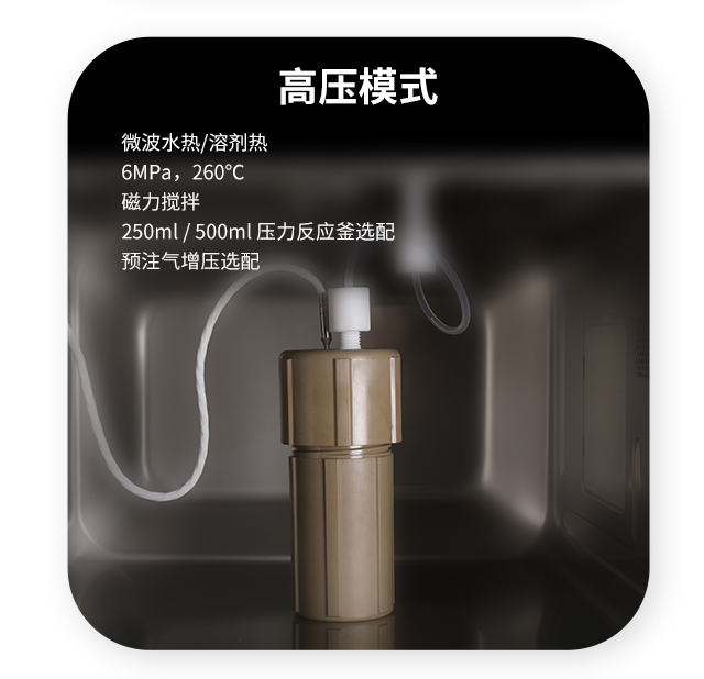 | 工作模式 | 常壓:安裝回流冷凝管進(jìn)行開(kāi)放式反應(yīng) 高壓:使用高壓反應(yīng)釜進(jìn)行密閉式反應(yīng) |