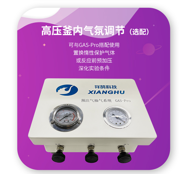 | 預(yù)注氣抽氣系統(tǒng) | 在反應(yīng)開(kāi)始前,可對(duì)高壓反應(yīng)釜內(nèi)的氣氛進(jìn)行調(diào)節(jié),進(jìn)行注氣、抽氣、換氣實(shí)驗(yàn) |