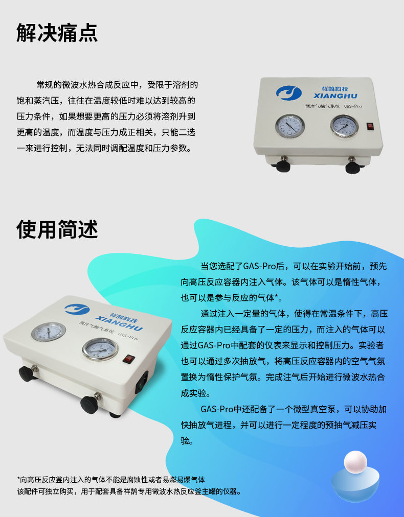 通過注入一定量的氣體,使得在常溫條件下,高壓反應(yīng)容器內(nèi)已經(jīng)具備了一定的壓力,而注入的氣體可以通過GAS-Pro 中配套的儀表來顯示和控制壓力。實(shí)驗(yàn)者也可以通過多次抽放氣,將高壓反應(yīng)容器內(nèi)的空氣氣氛置換為惰性保護(hù)氣氛。完成注氣后開始進(jìn)行微波水熱合成實(shí)驗(yàn)。