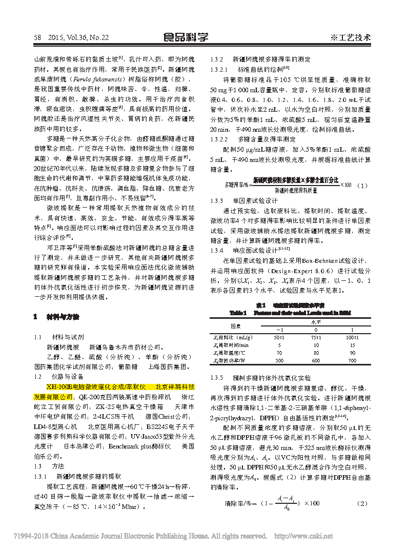 100B 響應(yīng)面試驗(yàn)優(yōu)化新疆阿魏根多糖微波輔助提取工藝及其體外抗氧化活性