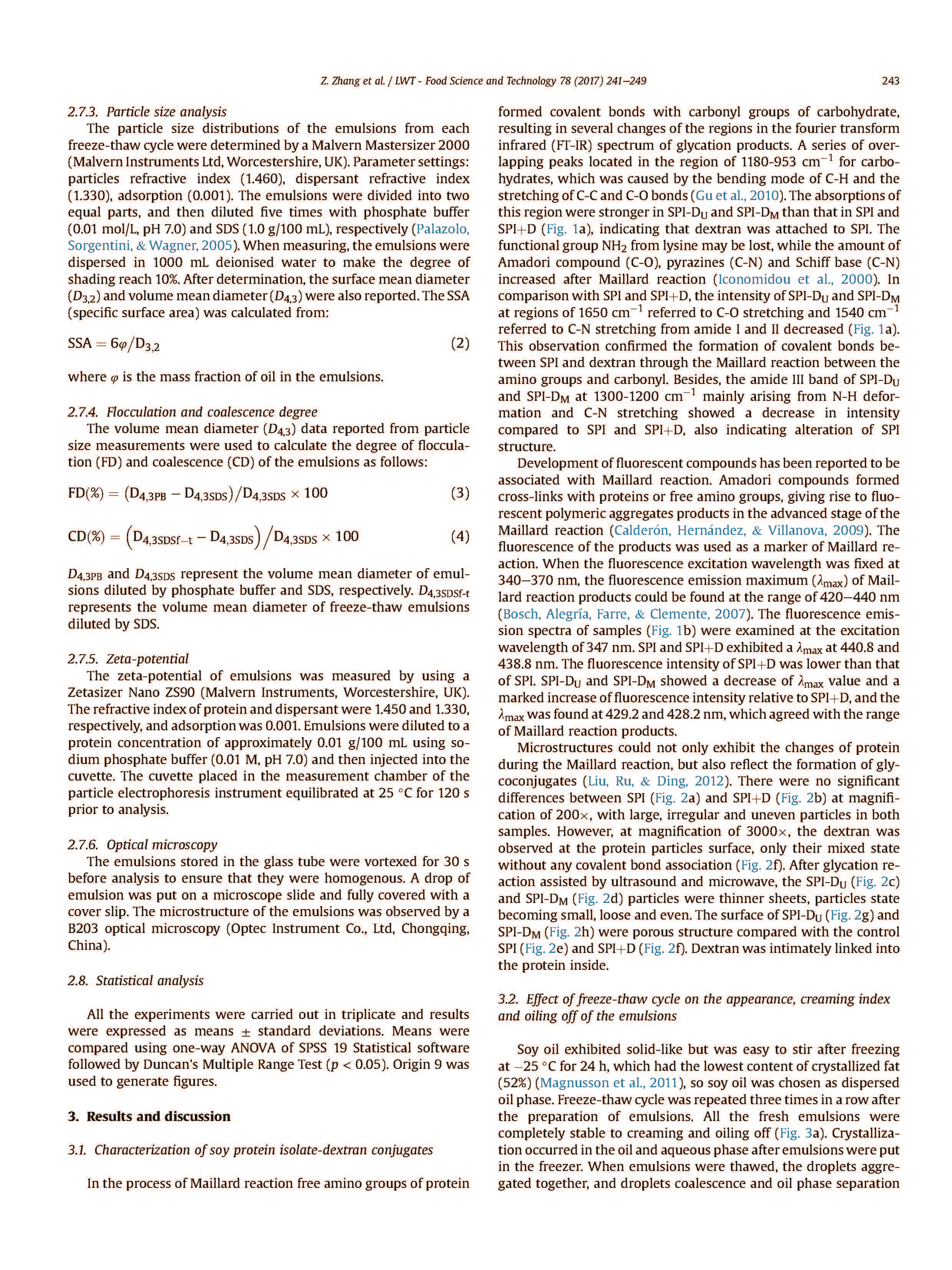 第199 通過大豆蛋白分離物 - 葡聚糖綴合物穩(wěn)定的水包油乳液的凍融穩(wěn)定性
