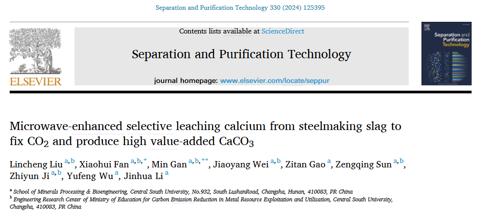 在這篇手稿中,我們介紹了一種使用乙酸 (HAc) 作為浸出溶劑的鋼渣碳化技術(shù)。此外,我們深入研究了不同實驗參數(shù)對微波環(huán)境下鋼渣浸出過程的影響。它揭示了鋼渣中的鈣浸出動力學(xué)機制,并通過吸附滲濾液中的低濃度 CO 合成高價值的 CaCO產(chǎn)物。該工藝將 HAc 的選擇性浸出能力與微波增強加熱提供的均勻性和效率相結(jié)合。因此,鈣和鎂元素被選擇性地分離并從鋼渣中浸出。它解決了鋼渣性質(zhì)不穩(wěn)定和資源利用受限等挑戰(zhàn),展示了廣闊的發(fā)展前景。此外提取的溶液可用于 COsequestation 和高純度、高價值碳酸鹽材料的合成。這極大地促進了鋼鐵行業(yè) CCUS 技術(shù)的進步,同時產(chǎn)生了巨大的社會和經(jīng)濟優(yōu)勢。