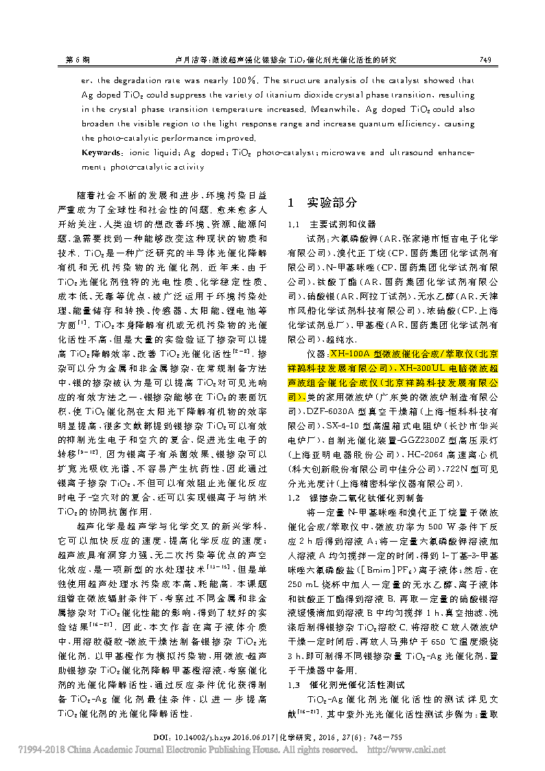 這篇由云南師范大學(xué)化學(xué)化工學(xué)院的研究學(xué)者完成,討論微波超聲強(qiáng)化銀摻雜Tio2催化劑光催化活性的研究的論文,發(fā)表在重要期刊《化學(xué)研究》上。